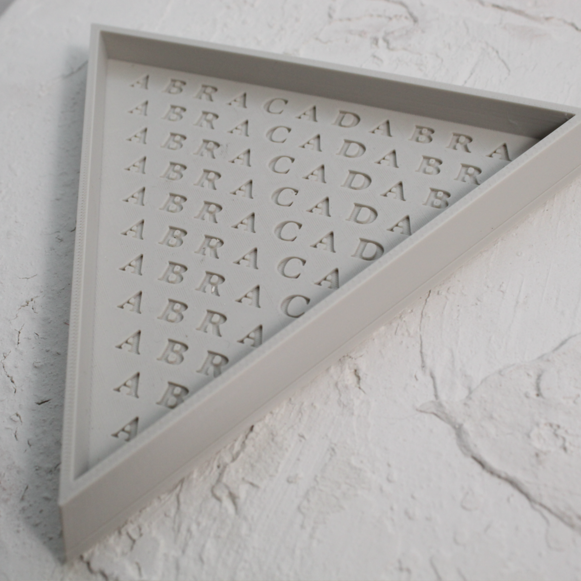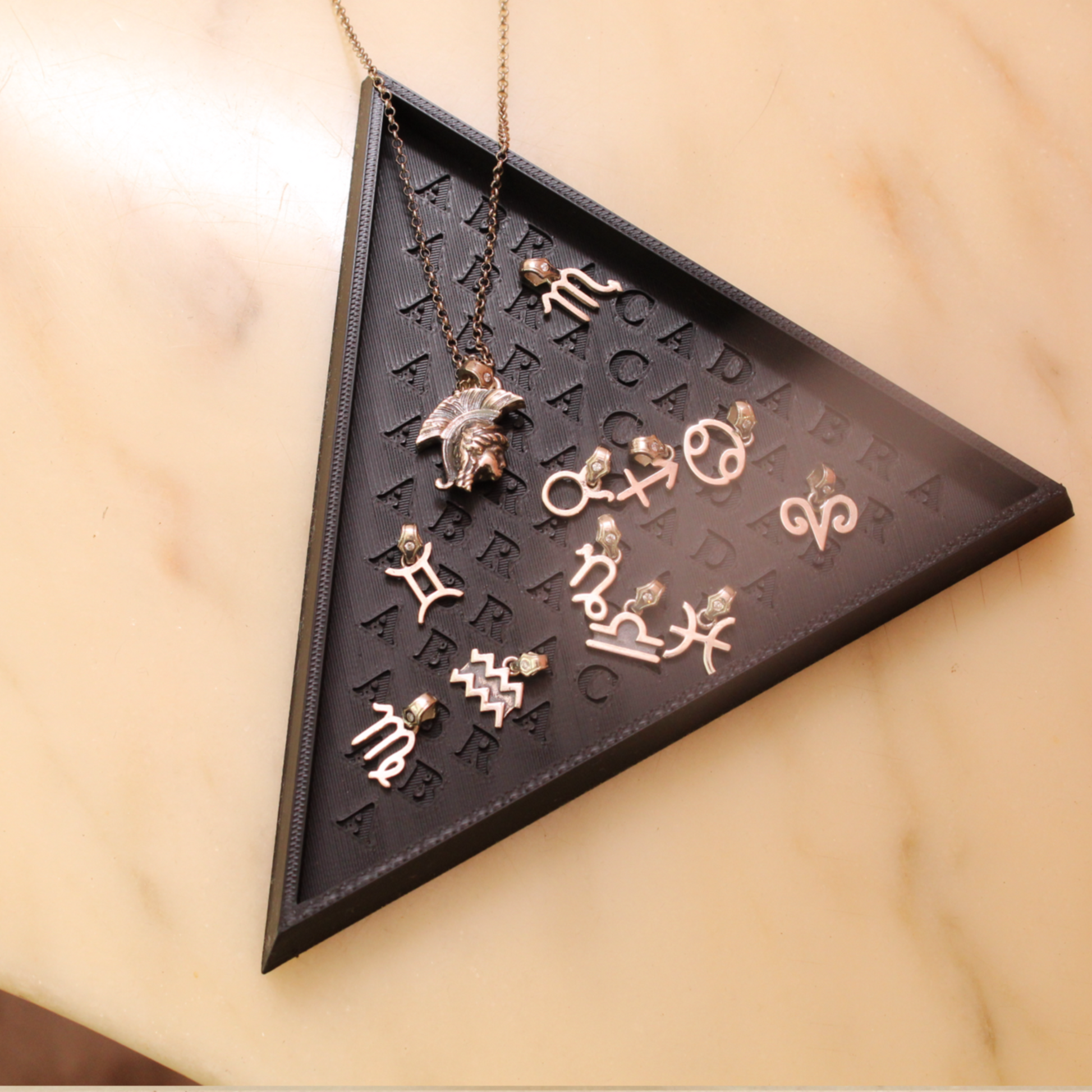 Abracadabra Triangle Jewelry Dish, 3D Printed in PLA (Plant-Based Bioplastic) Keep away from heat sources (so avoid prolonged exposure to the sun)!
