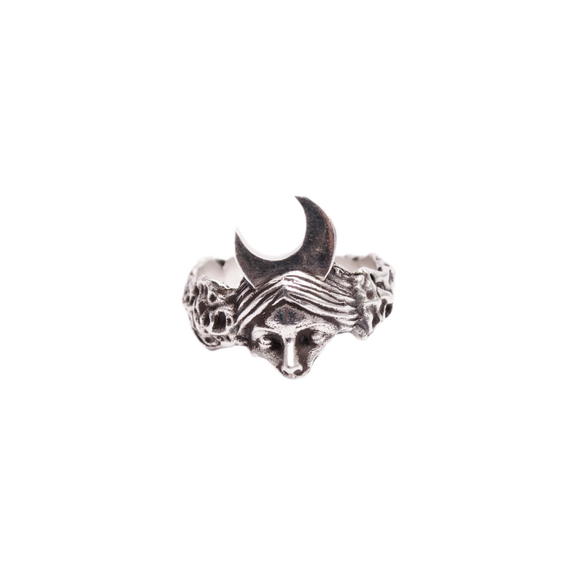 Goddess of the Moon in three forms: Selene in the sky, Artemis on Earth, and Hecate in Hades. Artemis, Goddess of the Crescent Moon, has her place in the Earthlings collection. She is worshipped as far away as the coasts of Sardinia for her purity and strength as a huntress.