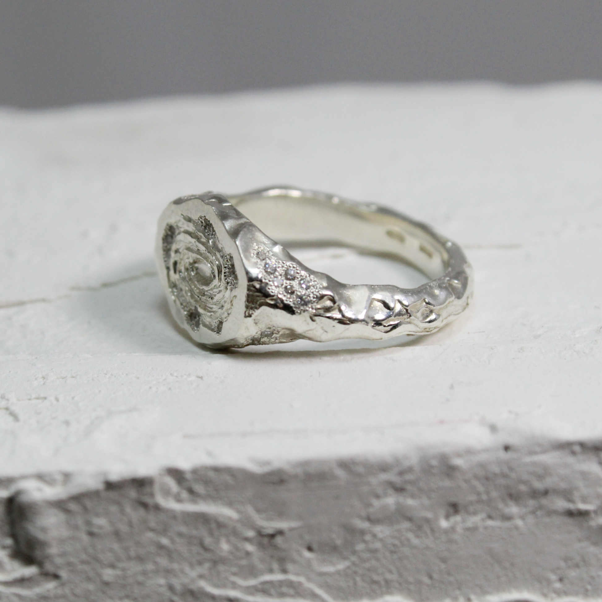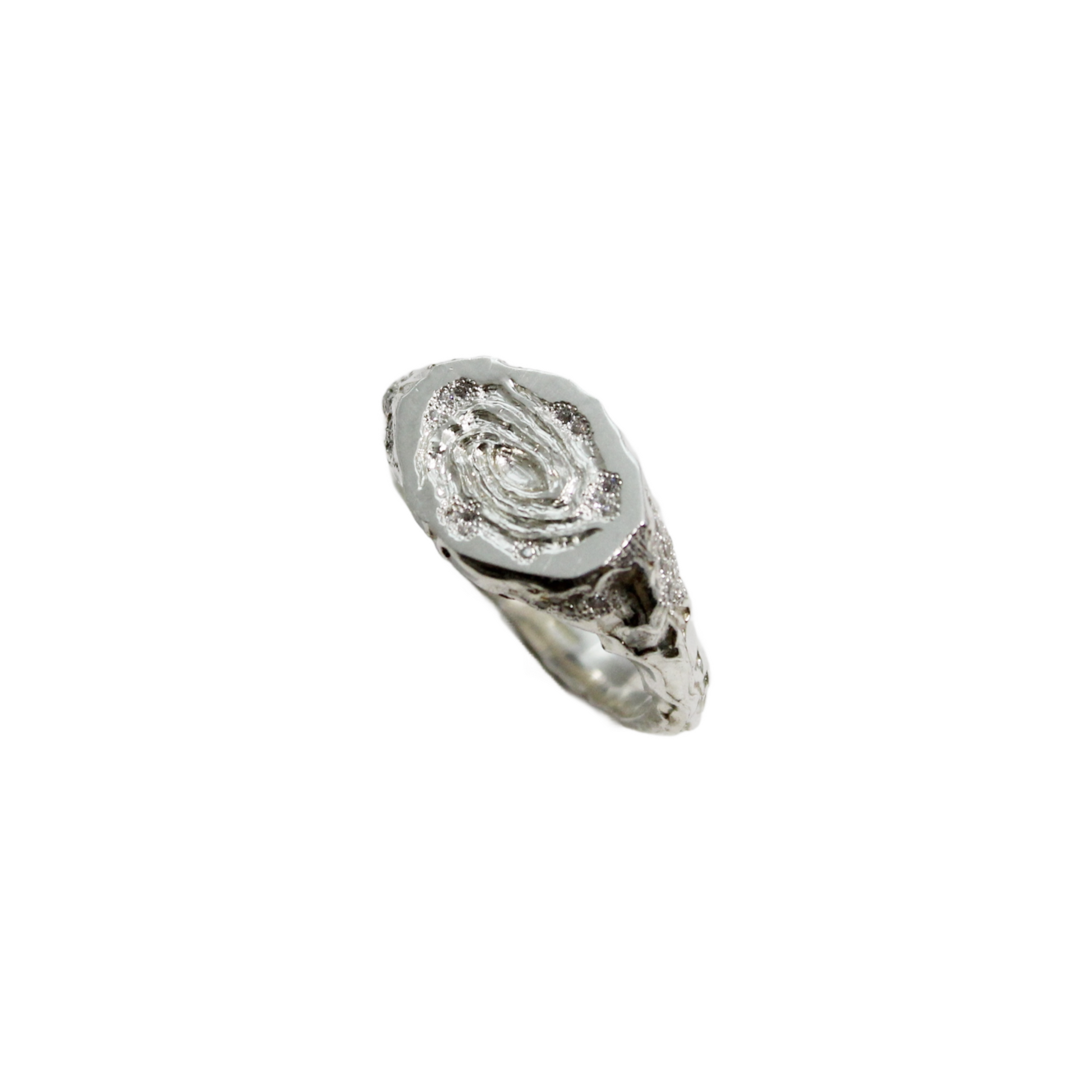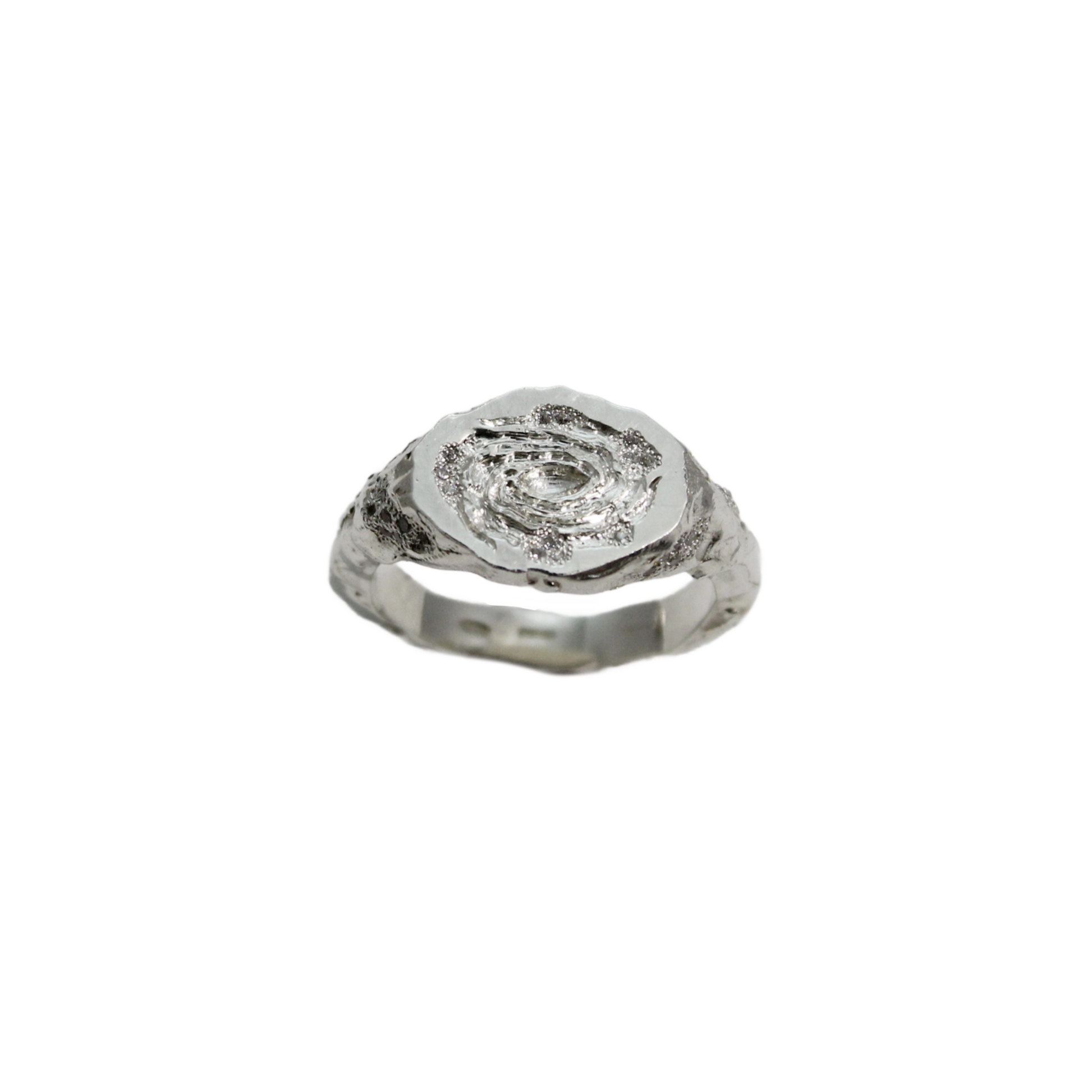 Hand-forged and hand-engraved ring in 925 silver and cubic zirconia. Each ring is engraved with a number, ensuring its uniqueness.