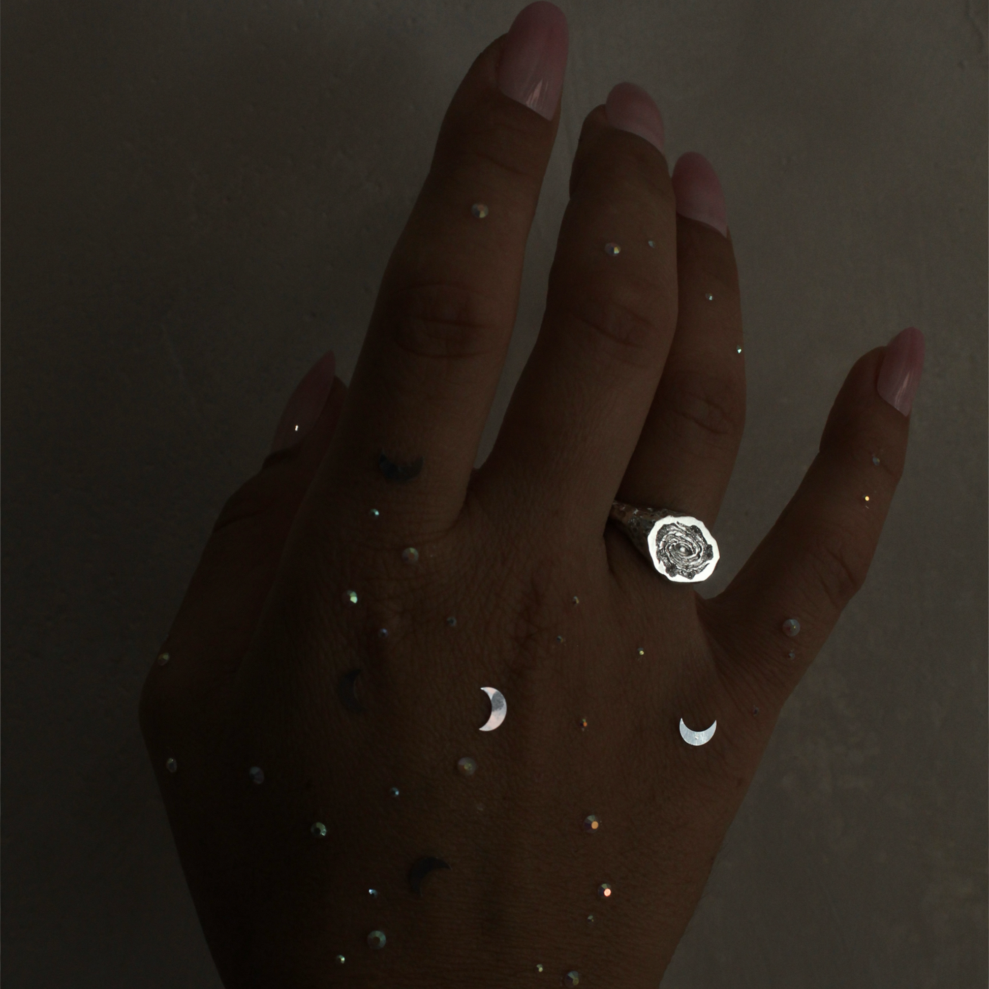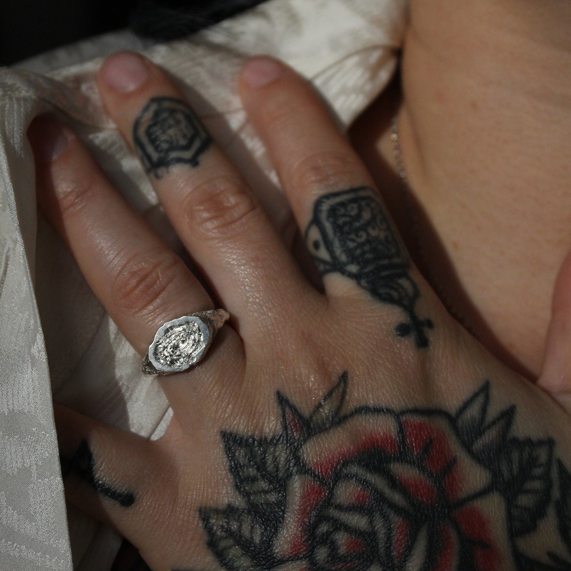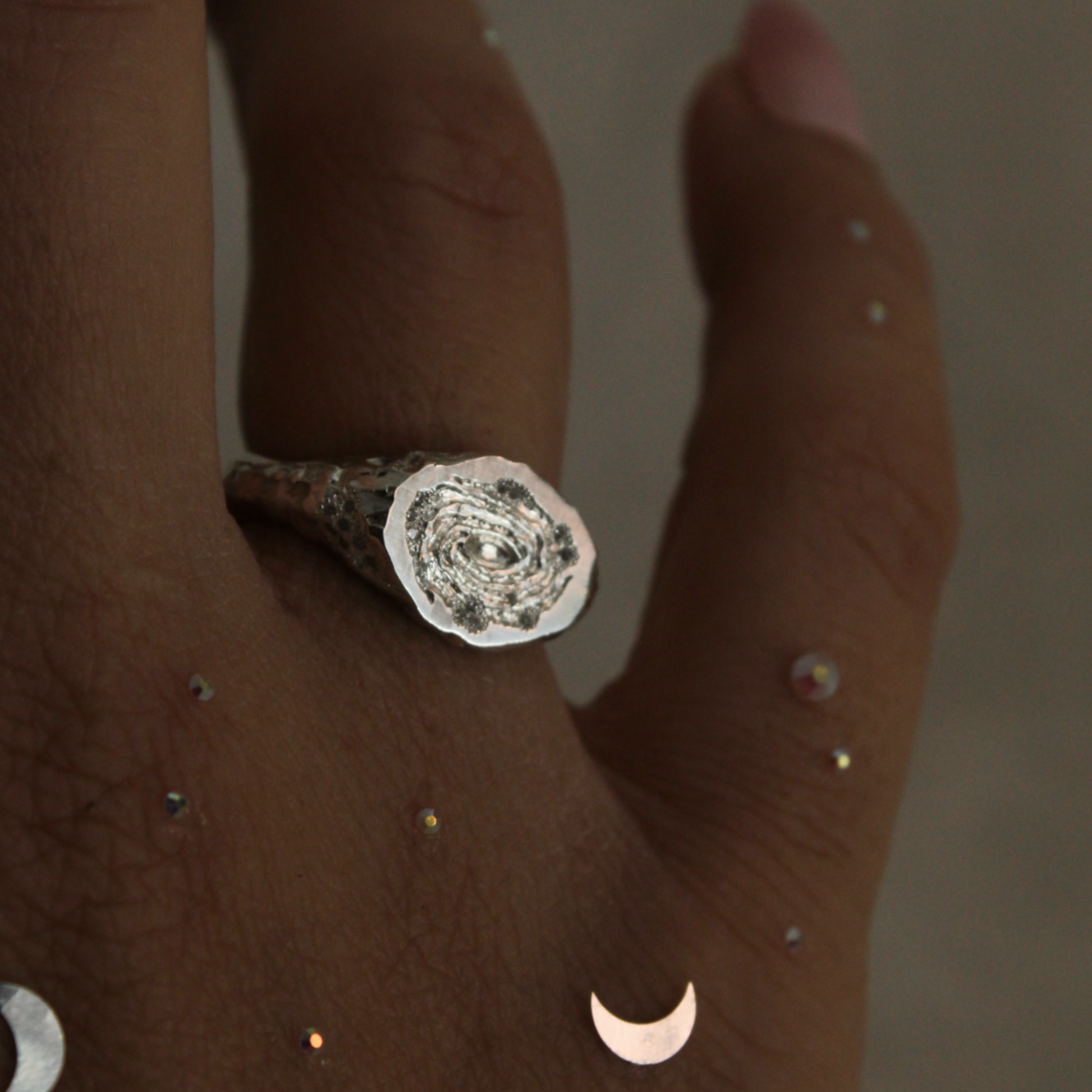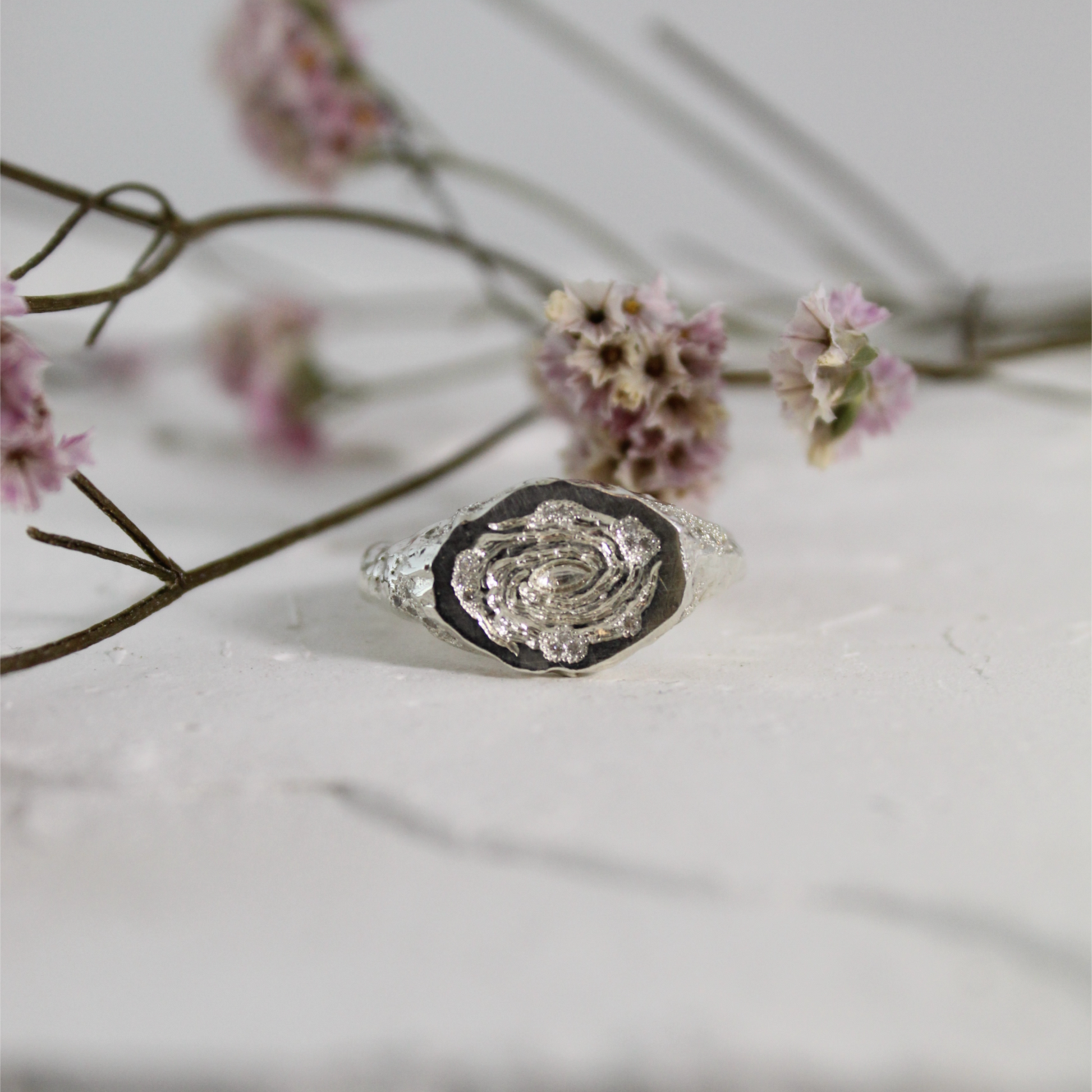 Hand-forged and hand-engraved ring in 925 silver and cubic zirconia. Each ring is engraved with a number, ensuring its uniqueness.