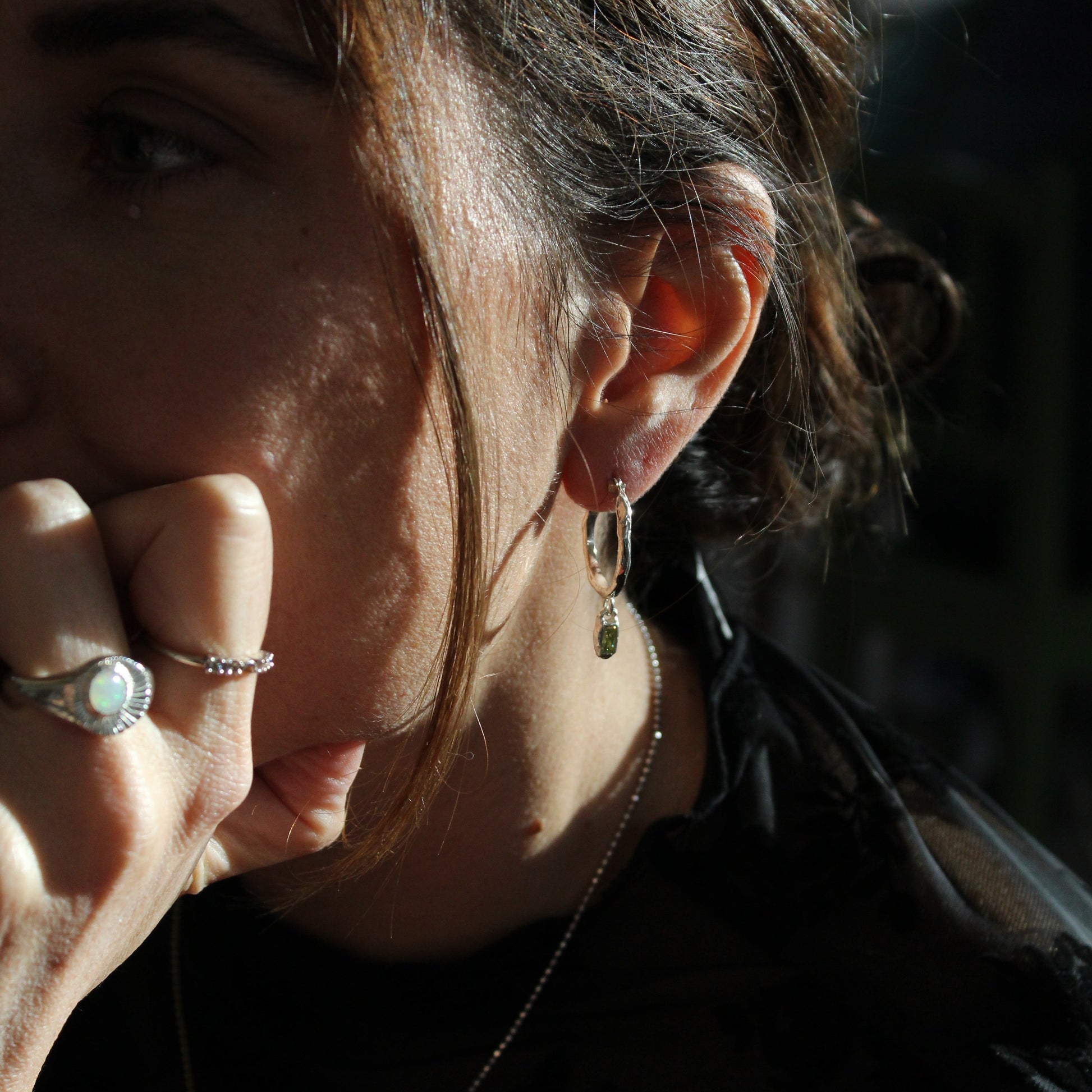 Kazan is an earring with an elemental texture. It has a fixed pendant that you can choose between the options. I have imagined this shiny jewel as a single earring to make it stand up among the others! You can also choose to wear many of them in different styles!