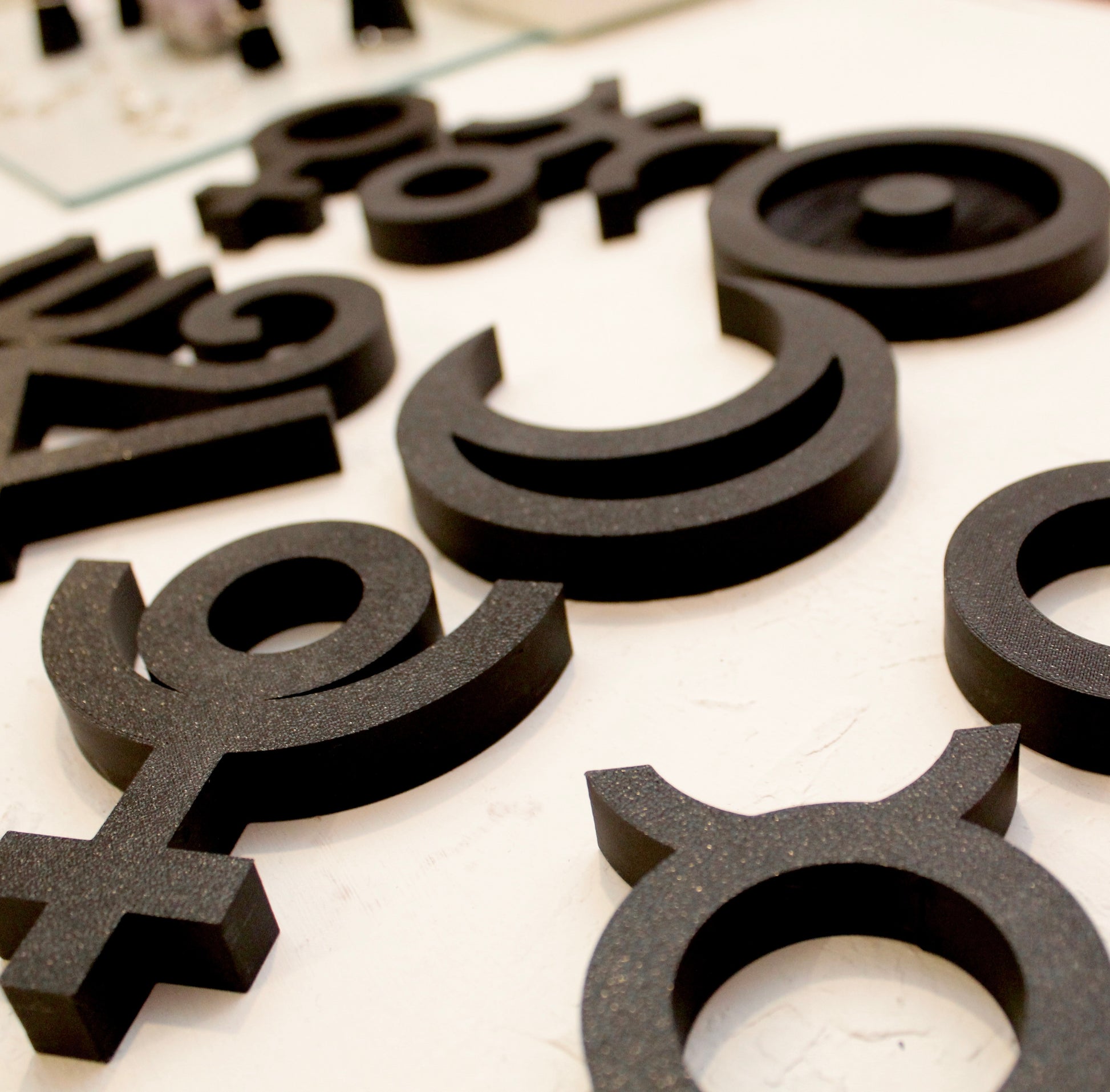 Wall lamp with alchemical symbol of the Moon, 3D printed in PLA (plant-based bioplastic) Keep it away from heat sources (so avoid prolonged exposure to the sun)!