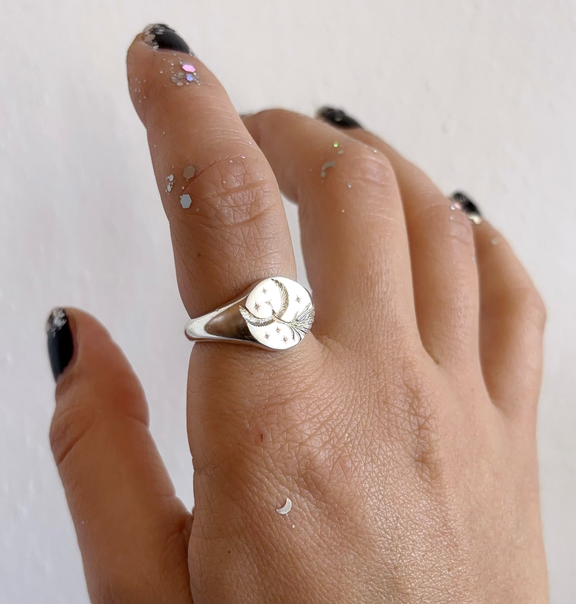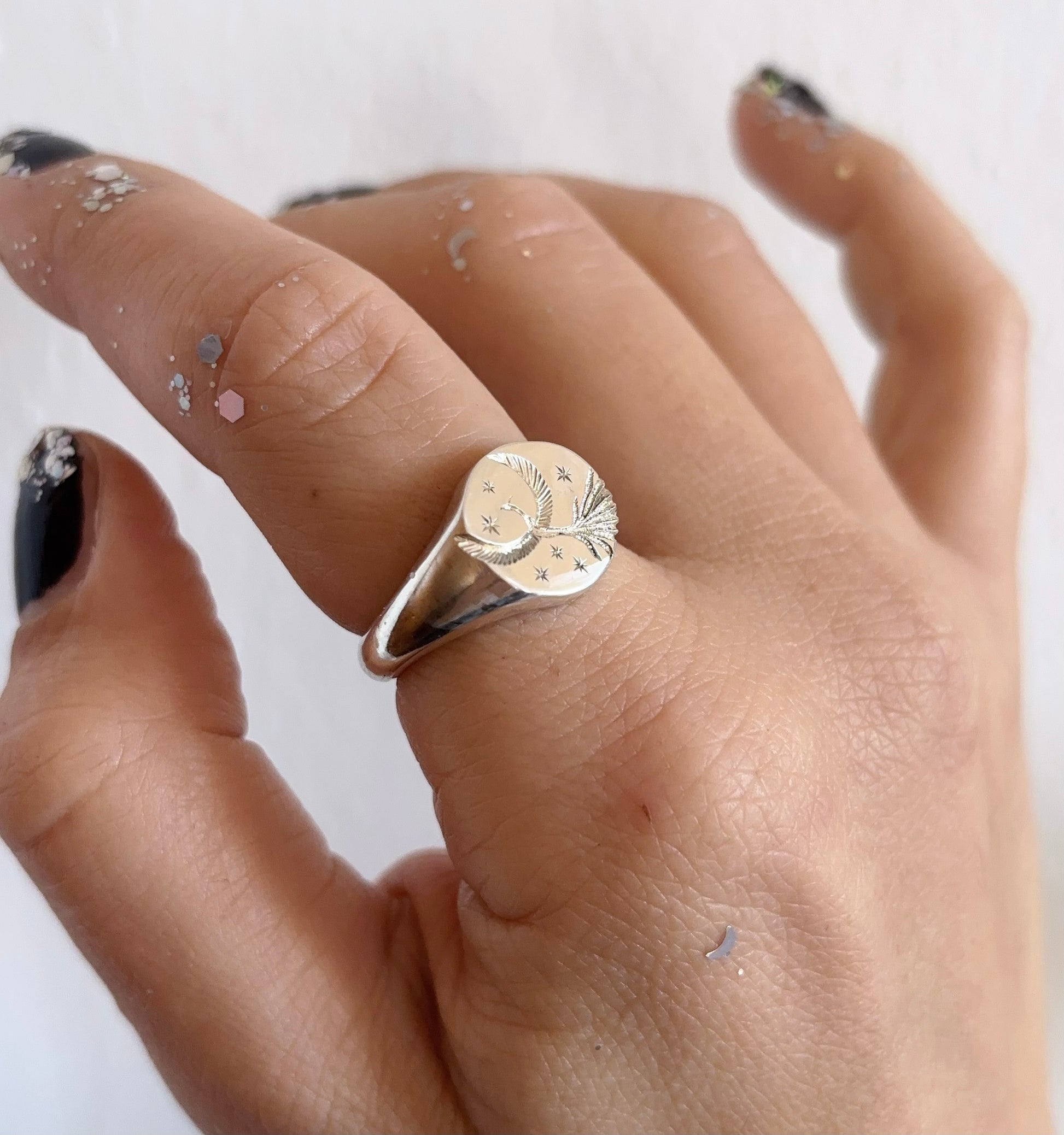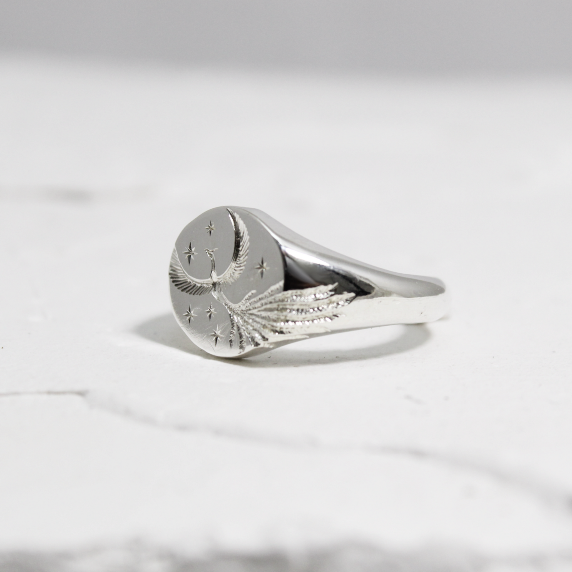 Hand-forged and hand-engraved ring in 925 silver and cubic zirconia. Each ring is engraved with a number, ensuring its uniqueness.