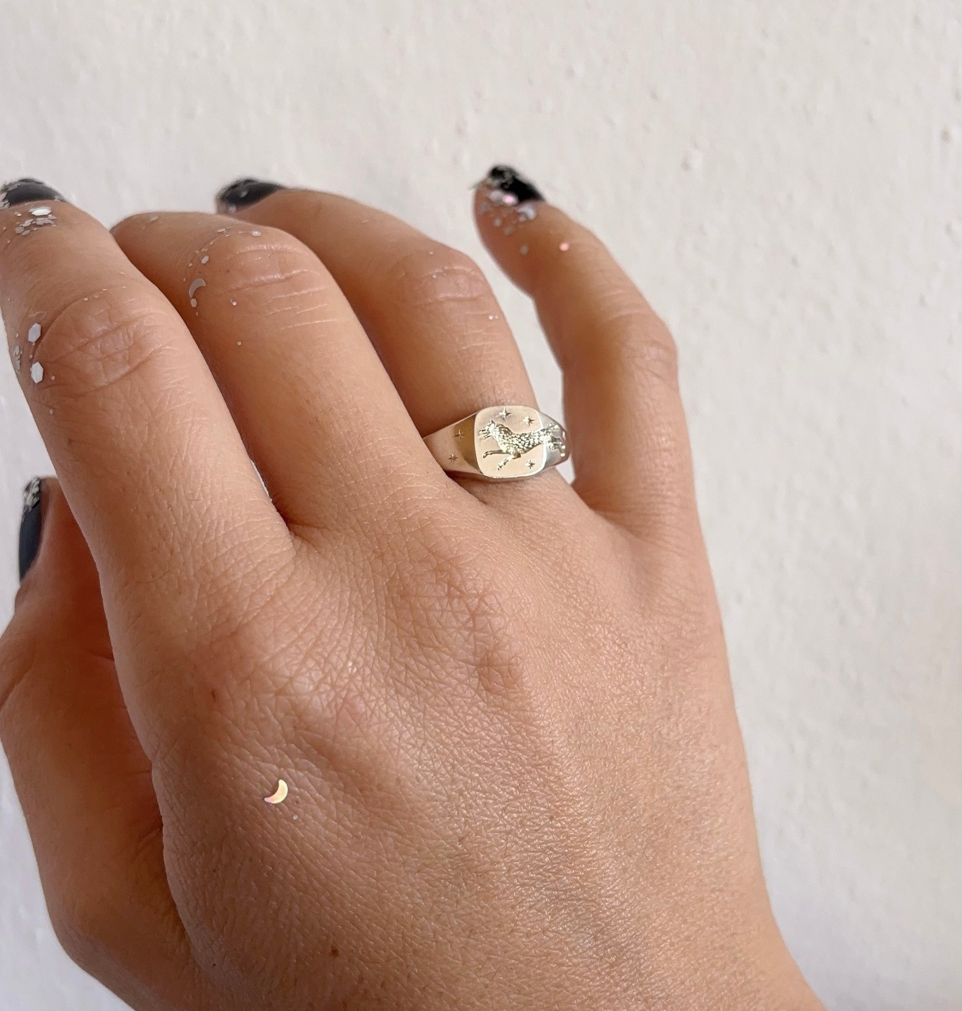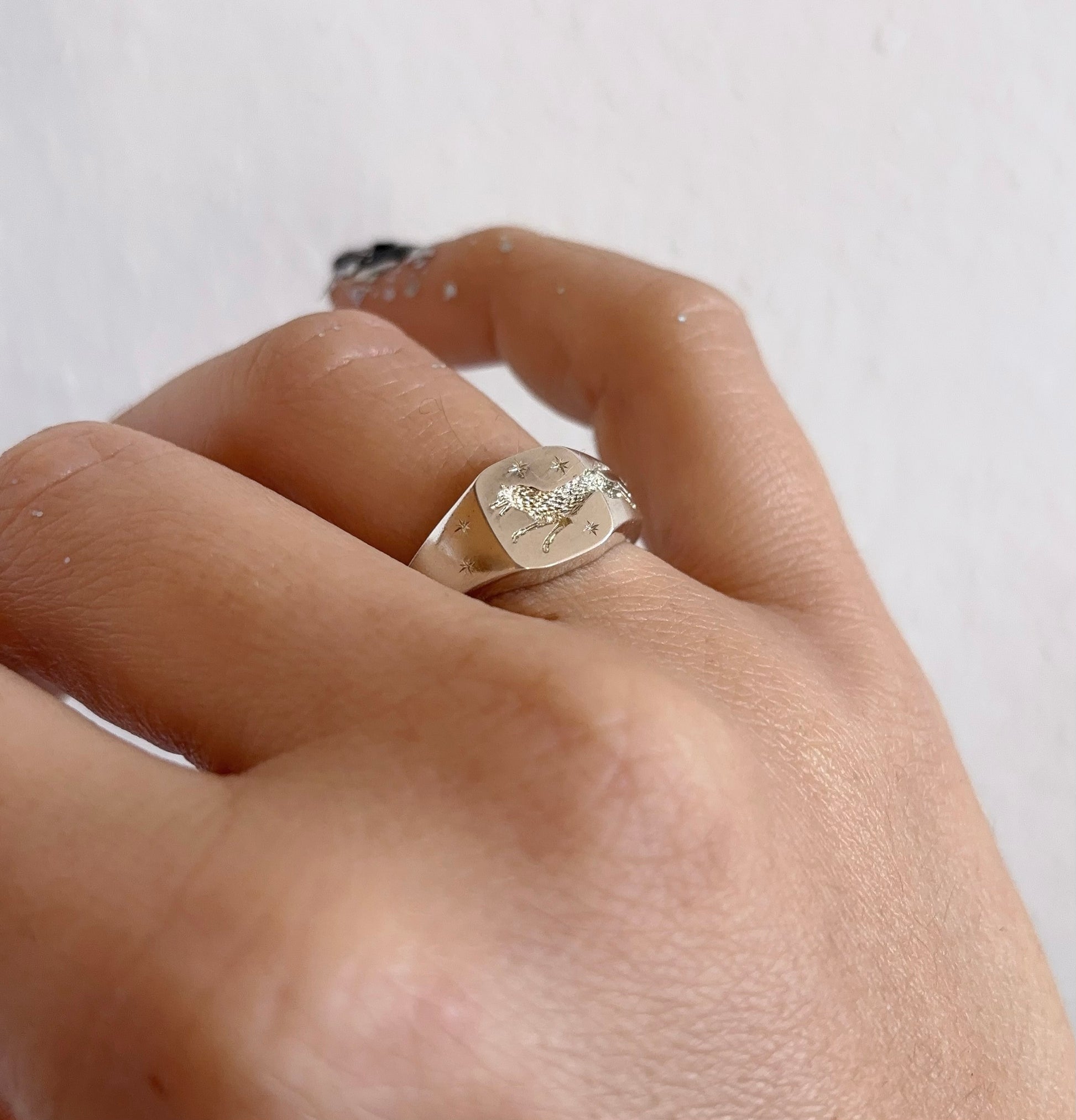Hand-forged and hand-engraved ring in 925 silver and cubic zirconia. Each ring is engraved with a number, ensuring its uniqueness.