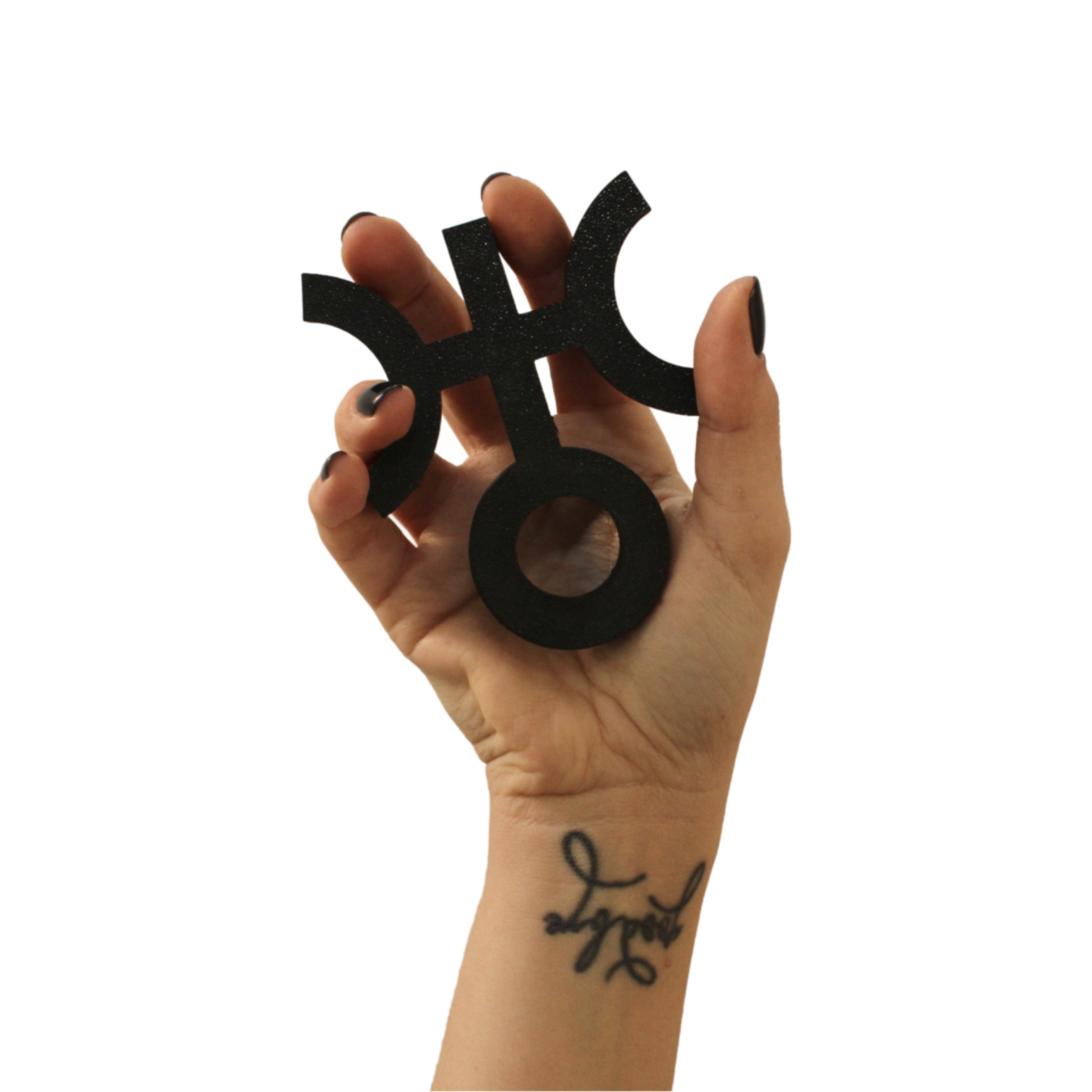 Wall lamp with alchemical symbol of Uranus, 3D printed in PLA (plant-based bioplastic) Keep it away from heat sources (so avoid prolonged exposure to the sun)!
