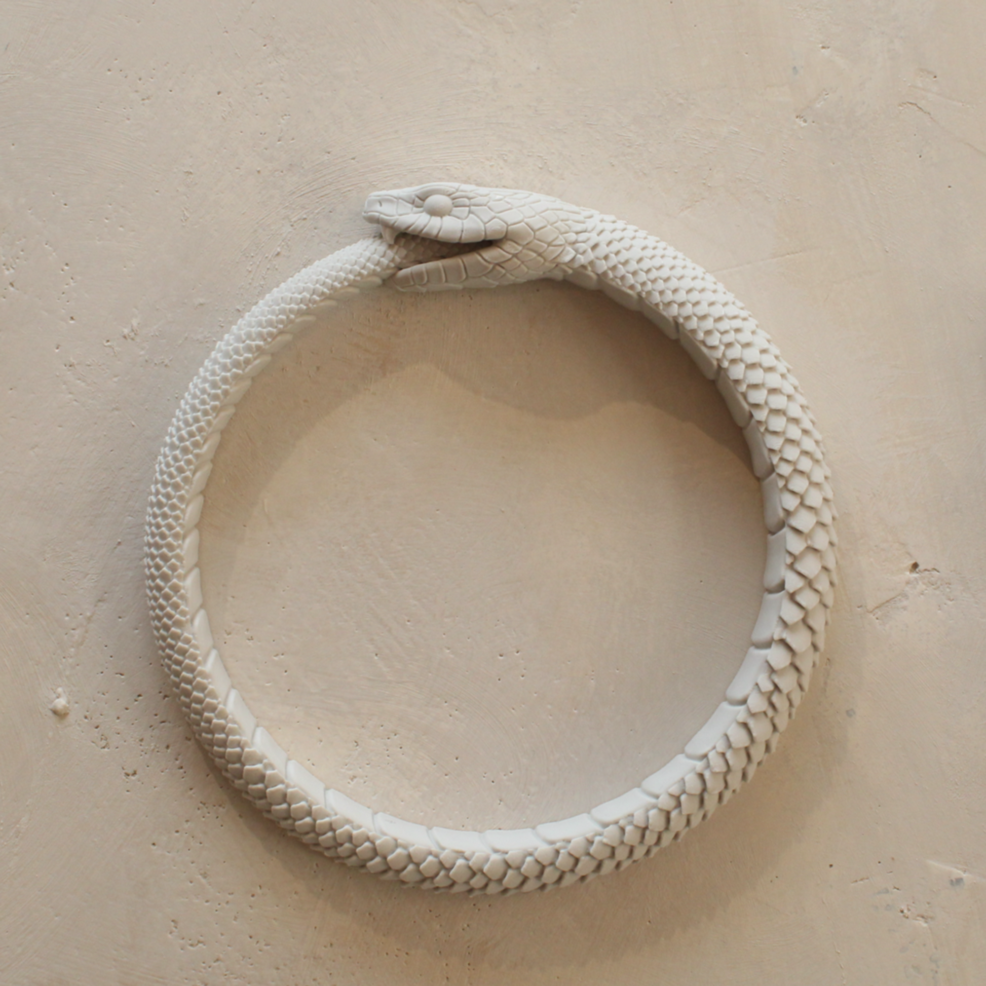 Ouroboros wall light, 3D printed in PLA (plant-based bioplastic). Keep it away from heat sources (so avoid prolonged exposure to the sun)!